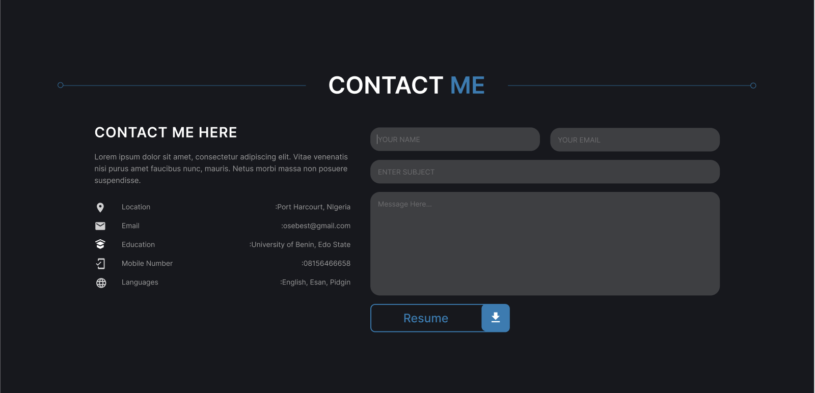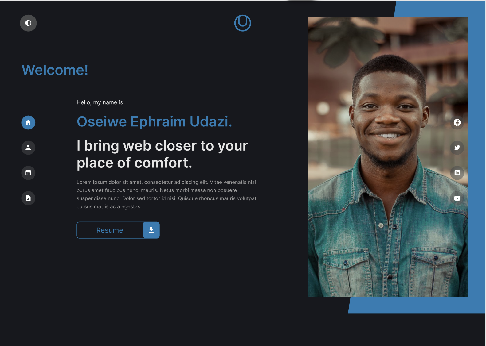 { I’m [Ephraim Udazi], an enthusiastic Web and Mobile Fullstack Developer, specializing in frontend development.